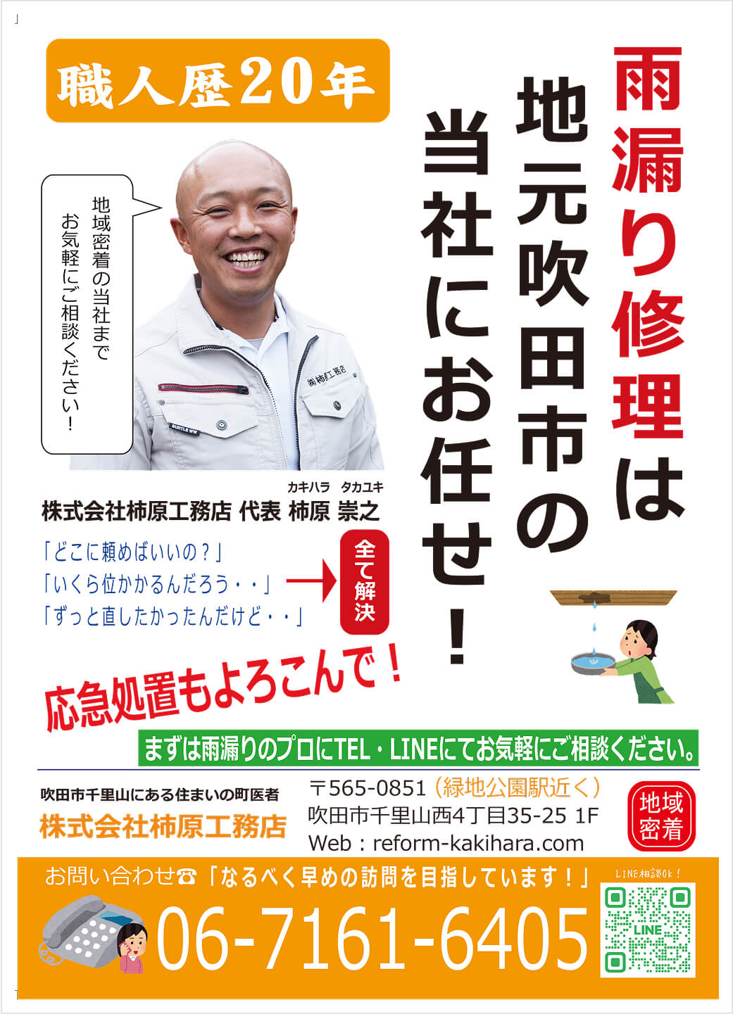 地域密着!吹田市・豊中市で雨漏りに困ったら